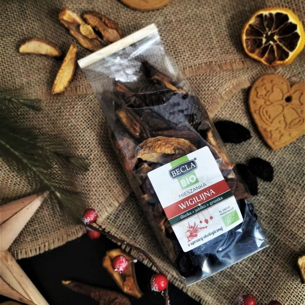Mieszanka wigilijna BIO to połączenie ekologicznych suszonych owoców: śliwki węgierki, gruszki i jabłka. Idealna do przygotowania aromatycznego kompotu. Produkt polski, naturalny, bez konserwantów i sztucznych dodatków.