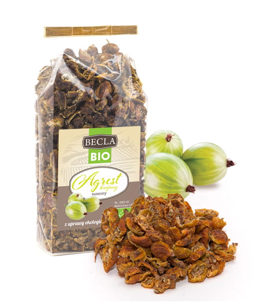 Prosty skład: Opakowanie zawiera 100% suszonych owoców agrestu z certyfikowanych upraw rolnictwa ekologicznego.