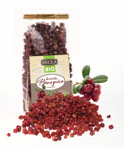 Prosty skład: Opakowanie zawiera 100% suszonych owoców borówki brusznicy z certyfikowanych rejonów stanu naturalnego (100%)