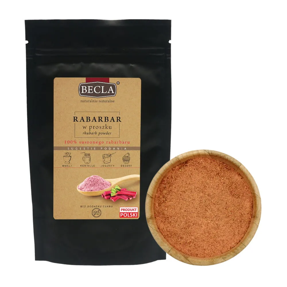 Zastosowanie: Sproszkowany rabarbar może stanowić wyśmienity dodatek do wypieków, owsianek, kompotów, musów, a także do przygotowywania napojów, jak smoothie.