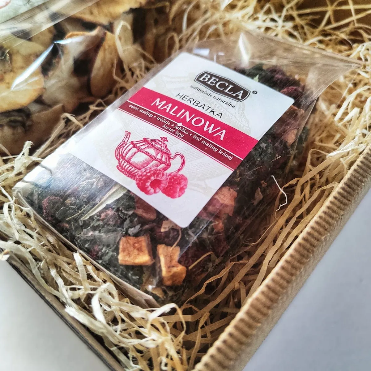 - Herbatka 100g - do wyboru: malinowa, rozgrzewająca z imbirem, rajska z konopią.